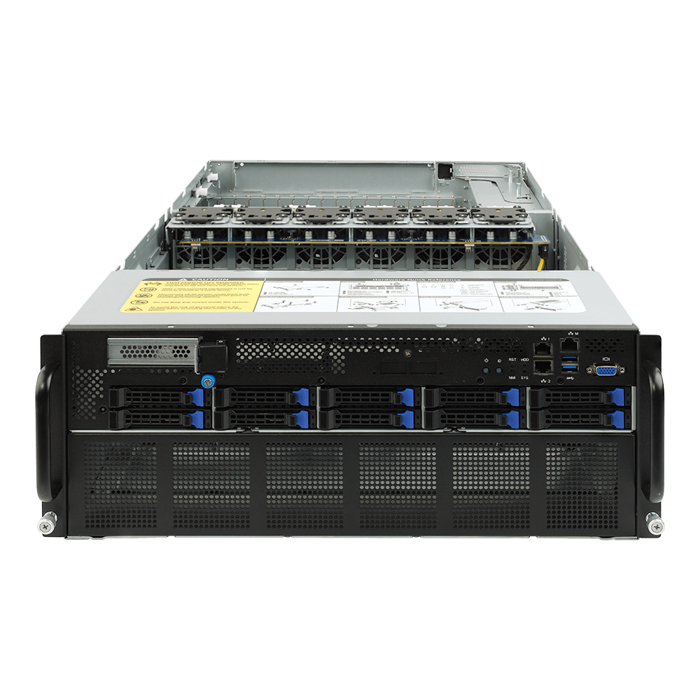 The G482-Z51 is one of the world’s first PCIe Gen 4.0 GPU server systems to be released to the market, featuring support for up to eight dual-width PCIe Gen 4.0 GPU cards (with each GPU connected directly to the processor via PCIe root). It is ideal to integrate an “AMD on AMD” solution using 2nd Gen EPYC processors together with the Radeon Instinct MI50, the world’s first 7nm, PCIe Gen 4.0 data center GPU, or with other Gen 3.0 or Gen 4.0 GPU cards for applications such as deep learning, cloud gaming or video streaming.